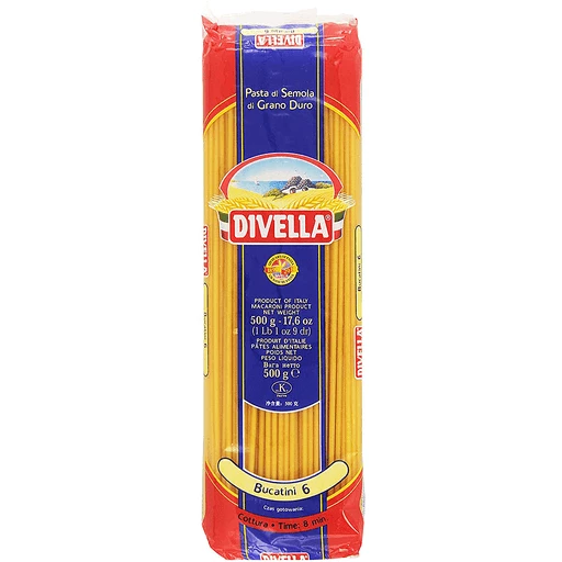 DIVELLA 06 BUCATINI is a high-quality pantry essential crafted with care to offer freshness, flavour, and nutrition. Versatile and easy to use, it’s suitable for preparing a wide range of delicious meals and snacks.