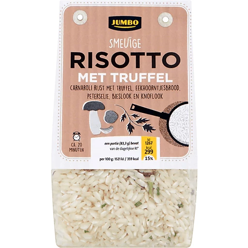 JUMBO SMEUIGE RISOTTO MET TRUFFEL is a high-quality pantry essential crafted with care to offer freshness, flavour, and nutrition. Versatile and easy to use, it’s suitable for preparing a wide range of delicious meals and snacks.