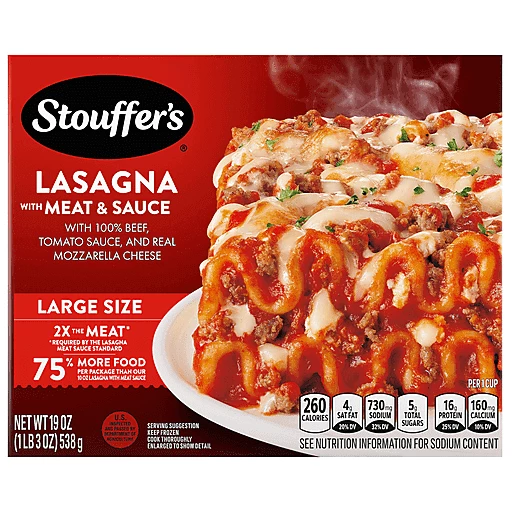 Stouffer’s Classic Lasagna with Meat and Sauce, Large Size, Oven Ready, Frozen Dinners