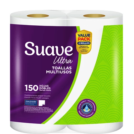 SUAVE ULTRA PAPER TOWELS is a strong and absorbent kitchen paper designed for everyday household use. Its durable texture easily handles spills, grease, and cleaning tasks while staying gentle on surfaces. Perfect for kitchens, dining areas, and cleaning around the home, it combines strength and softness for superior performance.