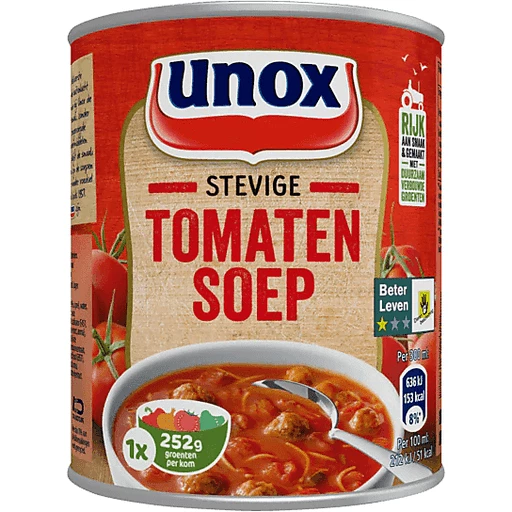 UNOX STEVIGE TOMATENSOEP is a high-quality pantry essential crafted with care to offer freshness, flavour, and nutrition. Versatile and easy to use, it’s suitable for preparing a wide range of delicious meals and snacks.